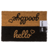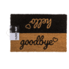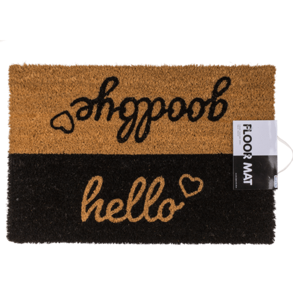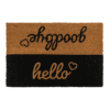 Floor mat, Hello – Goodbye, ca. 60 x 40 cm, with header card for hanging – This door mat will become an eye-catcher in front of your or front door! The doormat in coconut fibre is perfect for indoors and outdoors and greets you when you come home with its simple design. The robust and hard-wearing mat reliably catches dirt and moisture and ensures that these are collected at the front door. Thanks to the inscription, you and your guests will receive a friendly welcome and goodbye from your mat. Welcome mat