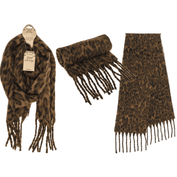Fluffy scarf with fringes, Leopard, 160 g, 30 x 180 cm, 100% Polyester, 6 pcs per polybag, with headercard – faux suede winter glovestouchscreen gloves with faux furfaux fur trim glovesone size winter gloves100% polyester glovesassorted color winter glovesholiday gift gloveswarm gloves for cold weatherstylish winter accessoriesretail packaged gloves