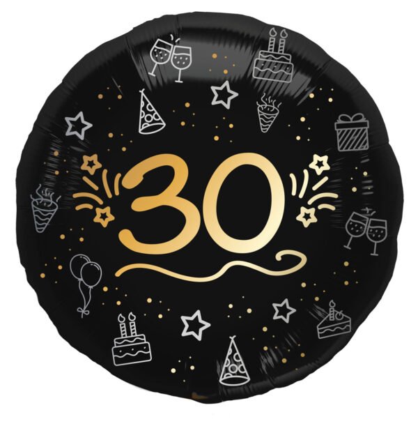 A milestone needs a foil balloon. Foil Balloon – “30” – Shining Glam – 45 cm. Contains: 1 foil balloon. You can use this article for the following party occasion(s): Birthday