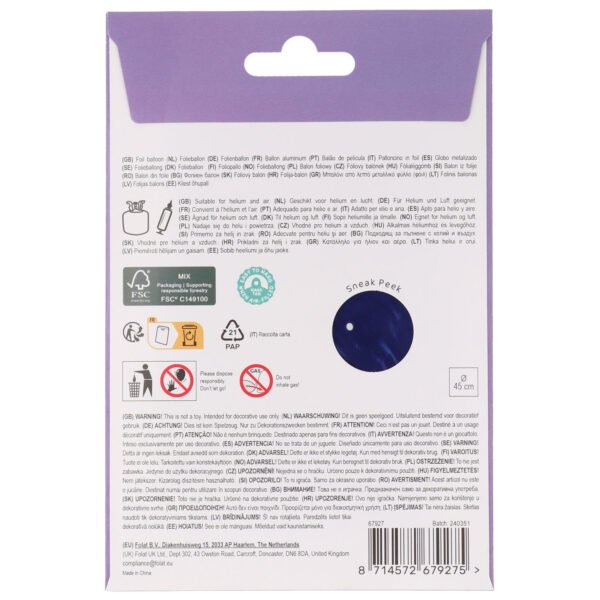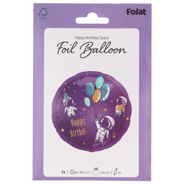Foil Balloon Birthday Space – 45 cm. Contents: 1 foil balloon. Colour: Purple. You can use this article for the following party occasion(s): Children’s party and Birthday. The foil balloon is 18 inch/45 cm. The article is made of foil.