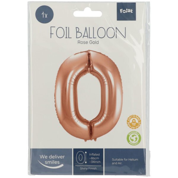 0 Shaped Number Balloon Rose Gold – 86 cm. Contents: 1 Foil Balloon. Colour: Rose Gold. You can use this article for the following party occasion(s): Birthday