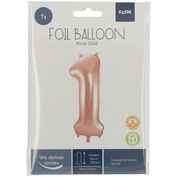 Number 1 party balloon. Foil Balloon Number 1 Rose Gold