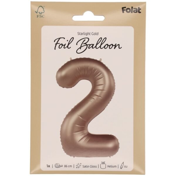 A modest shine for every party. Foil balloon Number 2 – Starlight Gold – Satin Gloss – 86 cm. Contains: 1 foil balloon. Can be used for example during the following party occasion(s): Birthday