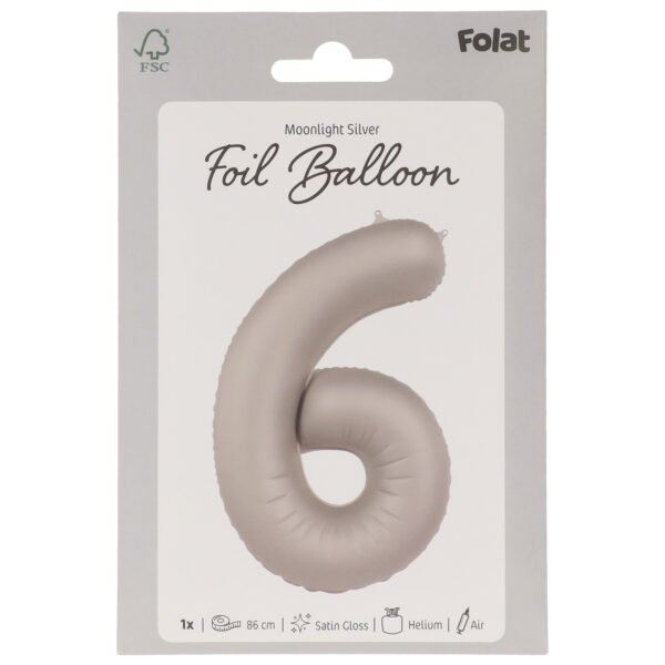 The right sparkle makes every occasion dazzling. Foil balloon Number 6 – Moonlight Silver – Satin Gloss – 86 cm. Contains: 1 foil balloon. Can be used for example during the following party occasion(s): Birthday