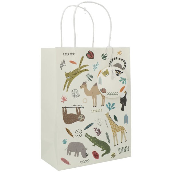 Gift Bags Zoo Party – 6 pieces. Contents: 6 Gift Bags. Colour: Multi Colors. You can use this article for the following party occasion(s): Children’s party. The distribution bags are approximately 27x20cm and are printed on both sides. Each bag has a name tag. This article is made of paper.