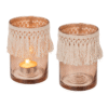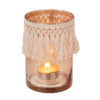 Glass tealight holder, Boho Style, ca. 8 x 12 cm – These glass tealight holder is suitable for standard size tealight candles and LED equivalents. It also provides relaxation and, especially when it is dark, a cosy atmosphere. The boho design catches the candlelight and reflects it for a beautiful effect, conjuring up dreamy shadow plays in your room. Candle Holder