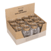 Glass vase with jute handle for hanging, ca. 5,5 x 10,5 cm, ca. 120 g, 12 pcs. per display – The small and simple glass vases can always be rediscovered in use! Whether as a small vase for individual flowers or as a small container for LED light chains, many DIY projects can be realised with the vases! In addition, the vase is tied with a jute ribbon so that it can be hung up indoors or outdoors. Hanging vase