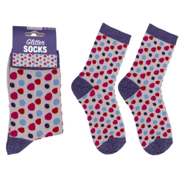 Glitter socks, dots, size 36-42, 55% cotton, 43% polyester, 2% elasthan, with headercard, 12 pair in polybag – Glitter socks Sparkly socks Polka dot socks Dotted socks Patterned socks Women’s socks size 36-42 Cotton blend socks Fashion socks Gift pack socks 12 pack socks