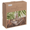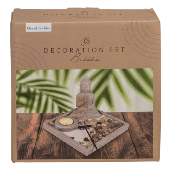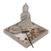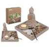 Grey colored cement plate, ca. 18 x 18 x 15 cm, with Buddha, tealight holder, rack, decorations stones & sand, in color box Cement plate