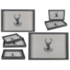 Grey colored wooden tray, deer head, set of 2 pcs., ca. 35 x 24 cm & 30 x 20 cm, each size with individual bar code label Grey tray