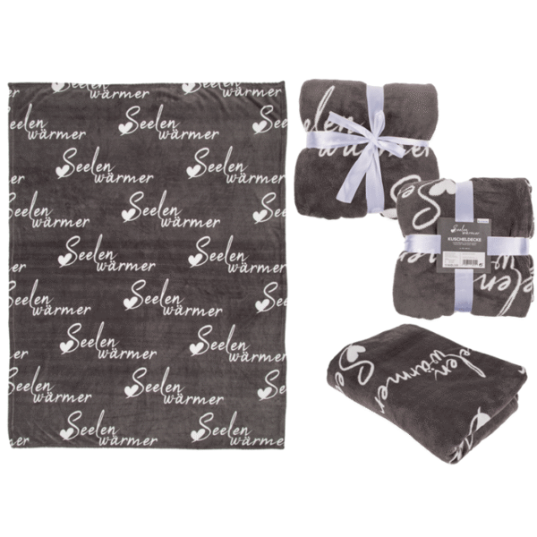 Grey coloured comfort blanket, Seelenwärmer, approx. 130 x 160 cm, 100% Polyester, in polybag with paper insert – Grey blanket