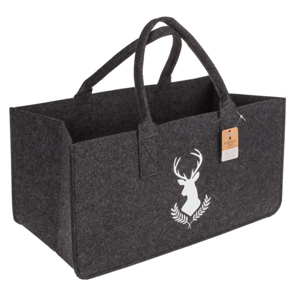 Grey felt bag for wood, deer, ca. 50 x 25 cm, 100% polyester, 2 colors ass., filling capacity max.15 kg, 8 pcs. per polybag Felt bag