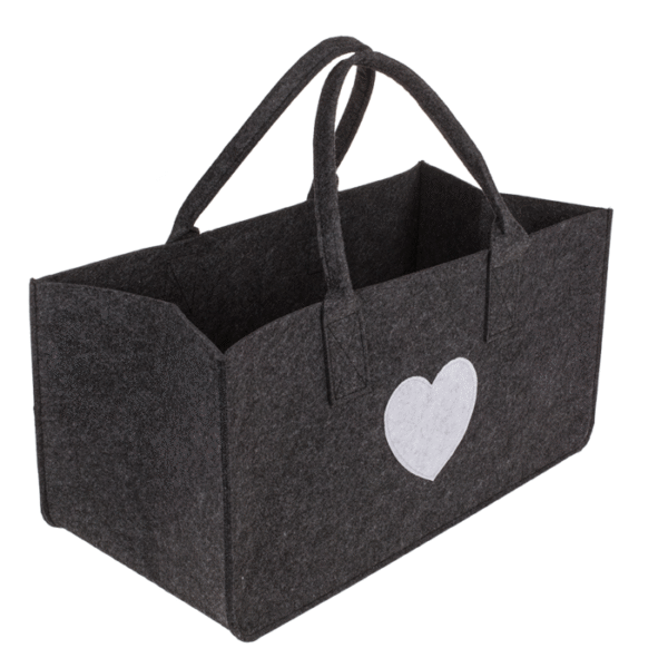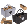 Grey felt bag for wood, with heart, ca. 50 x 25 cm, 100% polyester, 2 colors ass., filling capacity max.15 kg, 8 pcs. per polybag Felt bag