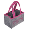 Grey Felt Bag, Prosecco to go, for 6 bottles, approx. 23 x 14,5 cm – Girls, just wanna have fun! The carrier bag offers space for 6 Prosecco bottles and is space-saving when empty as the bag can be folded up again. The carrying straps are stable and therefore ensure a safe transport. The grey coloured felt bag with pink details measures approx. 23 x 14.5 cm. Grey bag