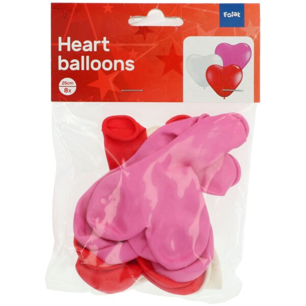 Heart-shaped Balloons various colours – 10 inch/25 cm – 8 pieces. Content: 8 Latex Balloons. You can use this article for the following party occasion(s): Valentines