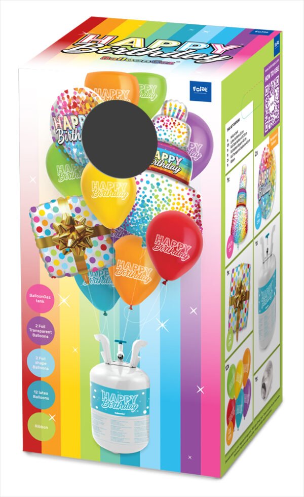 Helium Cylinder BalloonGaz 30 ‘Happy Birthday’ with Balloons and Ribbon. Contents: 1 helium cylinder (0