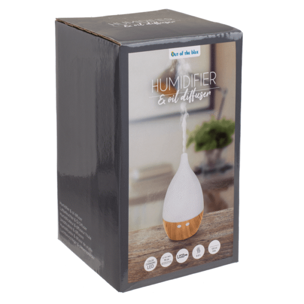 Humidifier/oil diffuser, Dome, with 7 colour changing LED & USB cable, for ca.130 ml, ca. 19 cm, plastic, in gift box – Aromatherapy diffuser