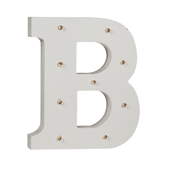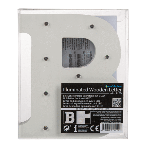 Illuminated wooden letter B, with 9 LED, ca. 16 cm, for 2 micro batteries (AAA) – The illuminated letters let you choose the way you like to decorate them! With the letters you can add your own individuality and personal touch. Whether names, places or words. The letters can be arranged over and over again and thanks to the 9 LEDs, the wooden decorations provide a romantic indirect light. The home accessories are powered by 2 AAA batteries and are operated with the help of an on/off button. In particular, the letters are ideal for the names of a bride and groom for their wedding. LED Letter