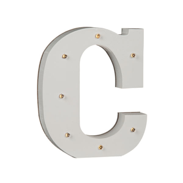 Illuminated wooden letter C, with 7 LED, ca. 16 cm, for 2 micro batteries (AAA) – The illuminated letters let you choose the way you like to decorate them! With the letters you can add your own individuality and personal touch. Whether names, places or words. The letters can be arranged over and over again and thanks to the 7 LEDs, the wooden decorations provide a romantic indirect light. The home accessories are powered by 2 AAA batteries and are operated with the help of an on/off button. In particular, the letters are ideal for the names of a bride and groom for their wedding. LED letter