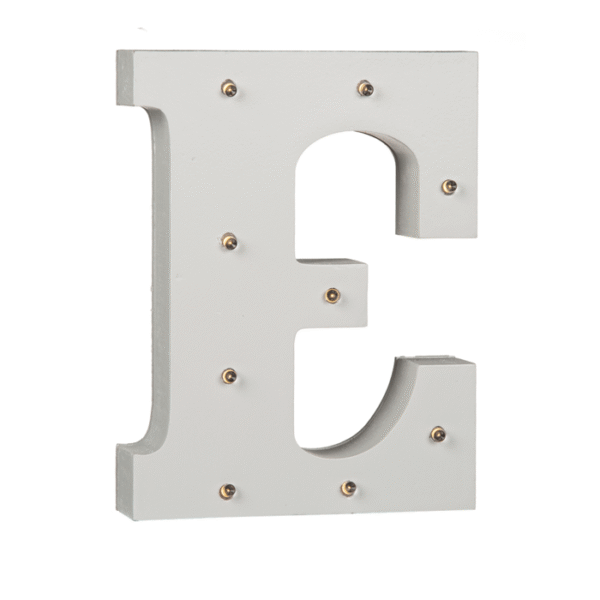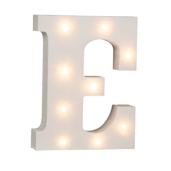 Illuminated wooden letter E, with 8 LED, ca. 16 cm, for 2 micro batteries (AAA) – The illuminated letters let you choose the way you like to decorate them! With the letters you can add your own individuality and personal touch. Whether names, places or words. The letters can be arranged over and over again and thanks to the 9 LEDs, the wooden decorations provide a romantic indirect light. The home accessories are powered by 2 AAA batteries and are operated with the help of an on/off button. In particular, the letters are ideal for the names of a bride and groom for their wedding. LED letter