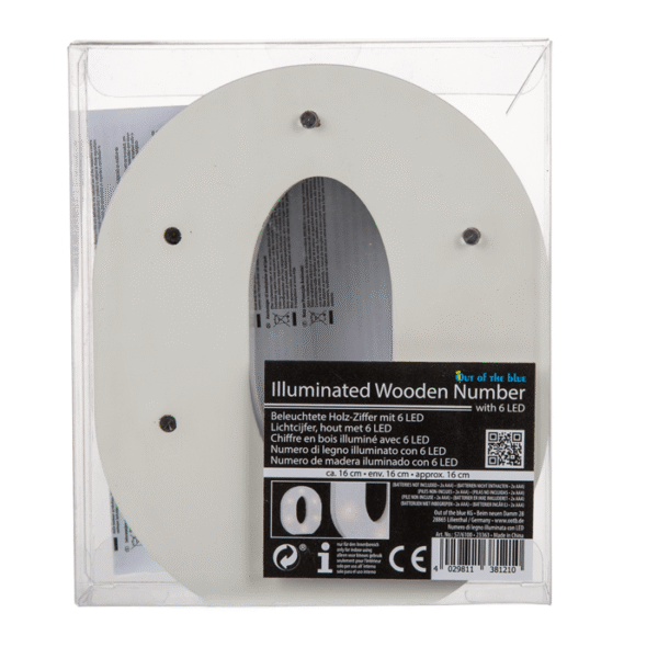 Illuminated wooden letter O, with 6 LED,