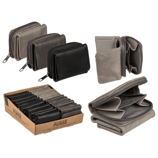 Imitation leather purse, ca. 9 x7 cm, ( 6 black, 3 x grey, 3 x taupe) 12 pcs in display – The wallet fits perfectly in a handbag and is also easy to find thanks to the design. This product can be converted at your discretion and is spacious enough to store some of your favourite items. Faux leather