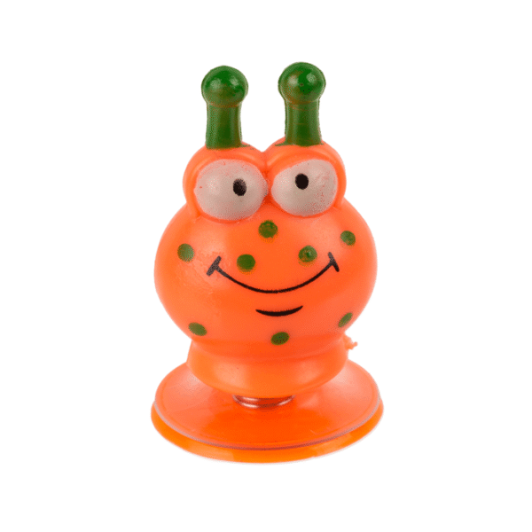 Jumping monster, ca 6 cm, 6 ass., plastic, in polybag, 72 pcs. per display – Each figure has a foot, a spring over it and a suction cup. If you now press the suction cup onto the foot, you only have to wait until the spring, which is compressed at the same time, expands again and the figure shoots upwards. The monsters are perfect to fill up some surprise bags for your party guests. Monster figurine
