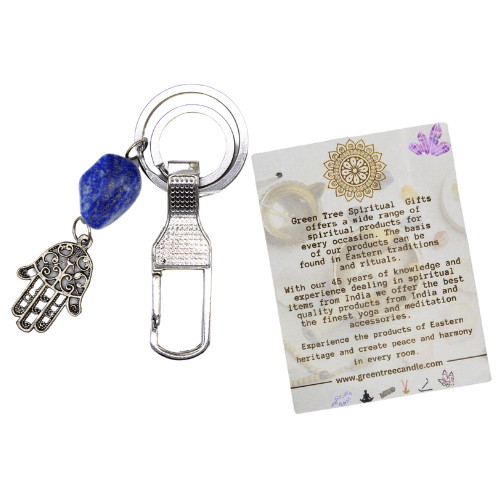 Metal Keychain – Fatima Hand & Lapis Lazuli