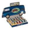Keyring, Model Car, VW T1 bus – 1963, with LED (incl. batteries) ca. 5 cm, plastic, 3 ass., 12 pcs. with display – Our keychain is the perfect size to keep in your pocket! The Mini VW T1 Bus has LED headlights and can also function as a small torch! The trailer is made of metal and has a metal ring. The model car is perfect for collectors and lovers of the old VW! Keychain