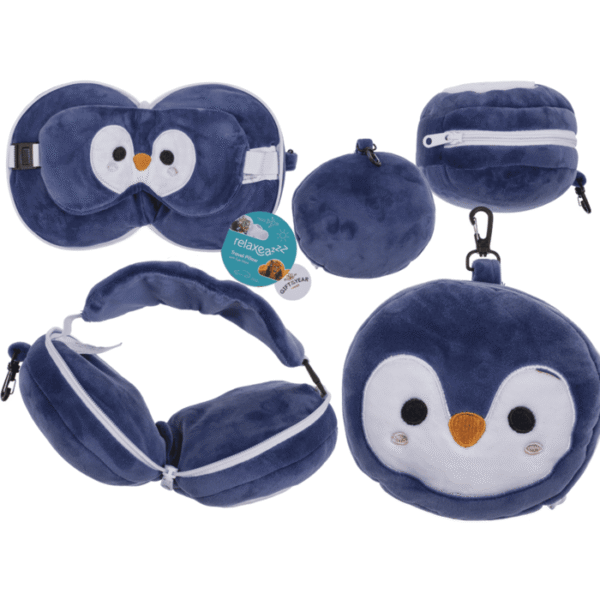 Kids Plush travel pillow with eye mask, Penguin, ca. 14 x 14 x 10 cm – Kids / Plush / Travel / Pillow / Eye mask