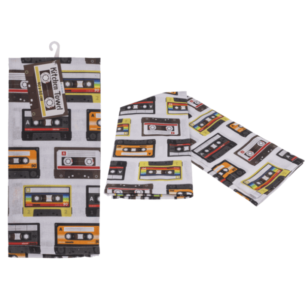 Kitchen towel, cassettes, 40 x 60 cm, 100% cotton, digital print, 12 pcs in polybag – kitchen / cleaning / absorbent / cotton / household