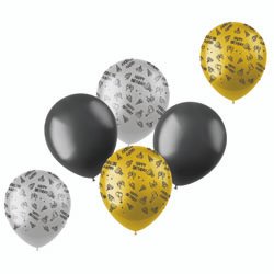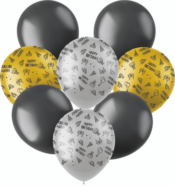 Metallic chic. Latex Balloons – Shining Glam – 30 cm – 8 pieces. Contains: 8 latex balloons. You can use this article for the following party occasion(s): Birthday. A beautiful set of balloons consisting of: 2 metallic gold balloons printed with the Shining Glam pattern
