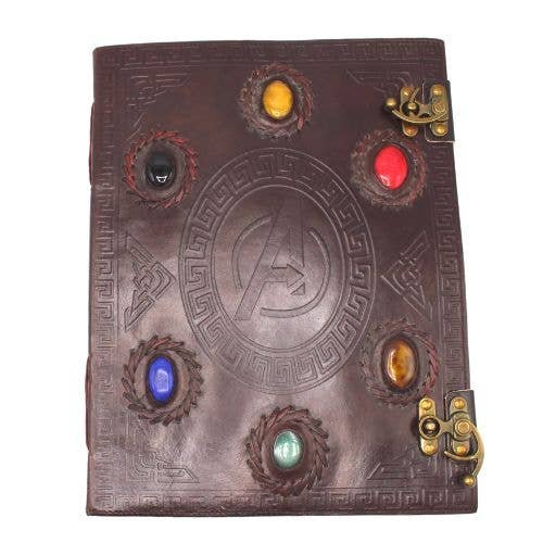 Handmade from genuine leather and decorated with 6 vibrant gemstones, this journal is perfect for recording spells, dreams or creative thoughts.