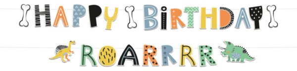 Letter garlands Dino Roars – 2 pieces. Contents: 2 letter garlands. Colour: Multicolour. You can use this article for the following party occasion(s): Children’s party. Each garland is approximately 14x150cm. This article is made of paper.