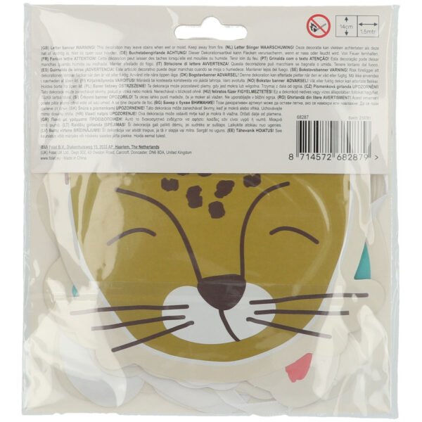 Letter garlands Zoo Party – 2 pieces. Contents: 2 letter garlands. Colour: Multicolour. You can use this article for the following party occasion(s): Children’s party. Each garland is approximately 14x150cm. This article is made of paper.