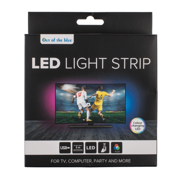 Light strip with colour changing LED, L: 3 m, with remote control, in gift box – With the 3 metre long LED strip you can create a cosy atmosphere in your room. Whether under your desk, under your bed or on the ceiling. Thanks to the adhesive back, you can stick the strip to a lot of surfaces. The colours of the strips can be adjusted as desired using the remote control included. The lights are supplied on a spool to protect them from bending. LED strip