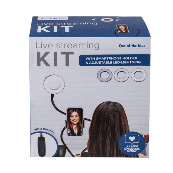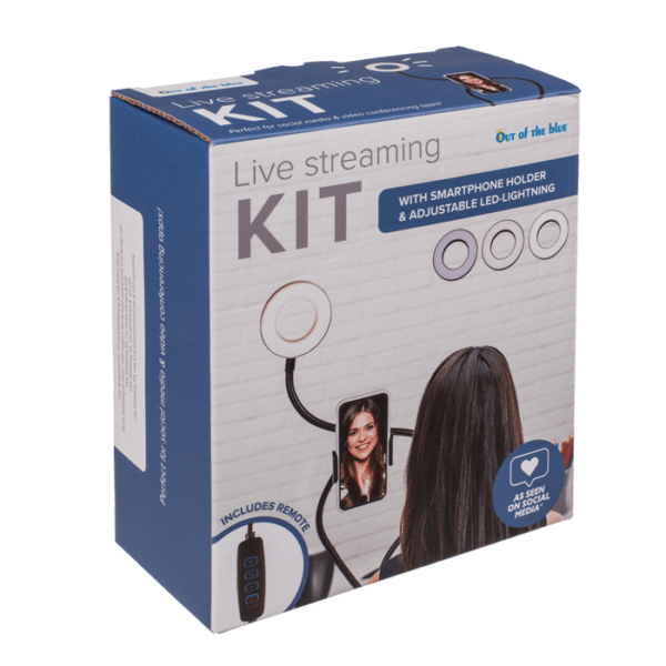Live Streaming & Vlogging Kit, with Light Ring and Smartphone Clip Holder, durable plastic with sturdy metal-reinforced arm for accurate positioning, in gift box, – This kit has everything you need for a good stream! The set consists of an universal mobile phone holder with the help of which you can set your mobile phone in front of you and record a video without having to use your hands! To prevent your mobile phone and the above mounted LED light ring from falling down, they are secured on a metal reinforced arm, which you can bend freely to get your perfect angle. The light ring has two different light intensities and can be charged using the USB cable. This way you are perfectly equipped for streams and also for video meetings! Live streaming