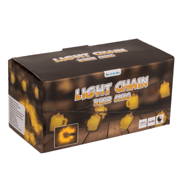 Llight chain, Beer mug, with 10 LED, IP44, 618 h timer, L: 1,60 m, for 2 mignon batteries (AA) ,in gift box LED chain