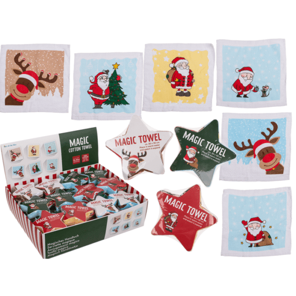 Magic cotton towel, Christmas, ca. 30 x 30 cm, 6 ass., 48 pcs. per display Christmas towel