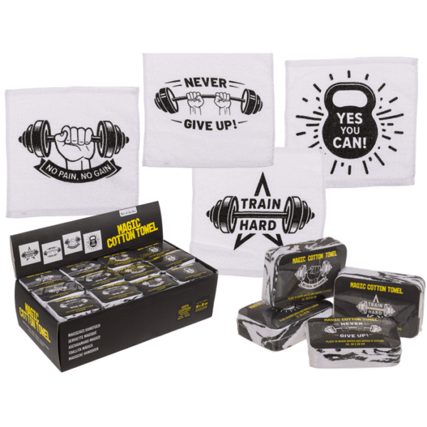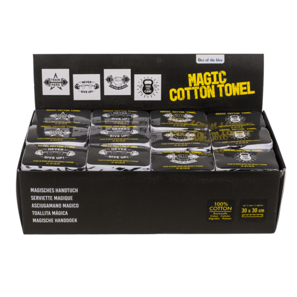 Magic cotton towel, fitness, ca. 30 x 30 cm, 4 assorted, 48 pcs per display – Fitness towel