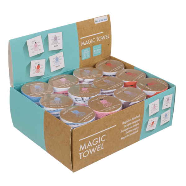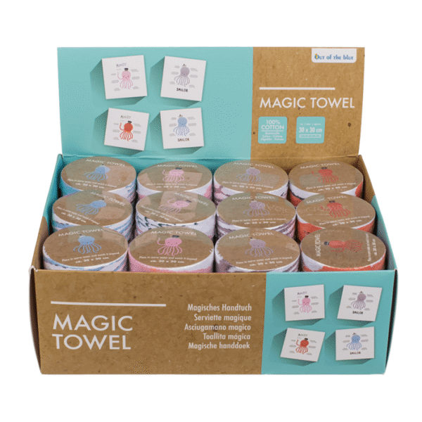 Magic cotton towel, octopus, ca. 30 x 30 cm, 4 assorted, 48 pcs per display – Magic towel