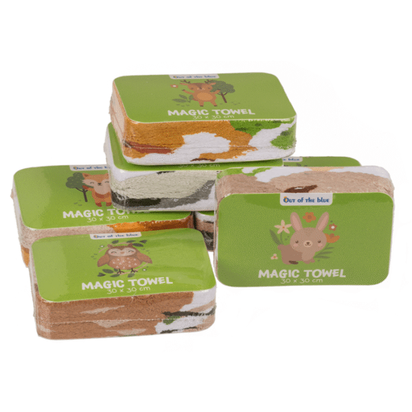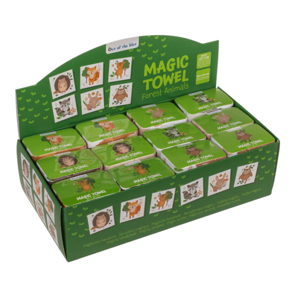 Magic cotton towle, forrest animals, ca. 30 x 30 cm, 6 assorted, 48 pcs per diplay Cotton towel