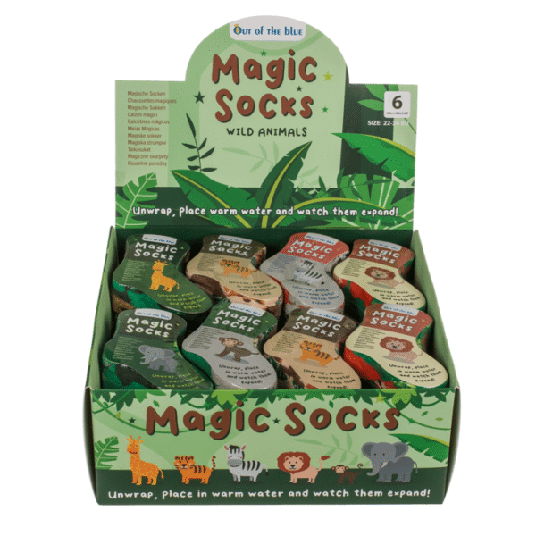 Magic kids soscks, wild animals, 1 pair, size 22-34, 19 x 15 cm, 6 assorted, made of 72% cotton, 23% polyester, 5% elastic, 24 pairs per display Kids socks