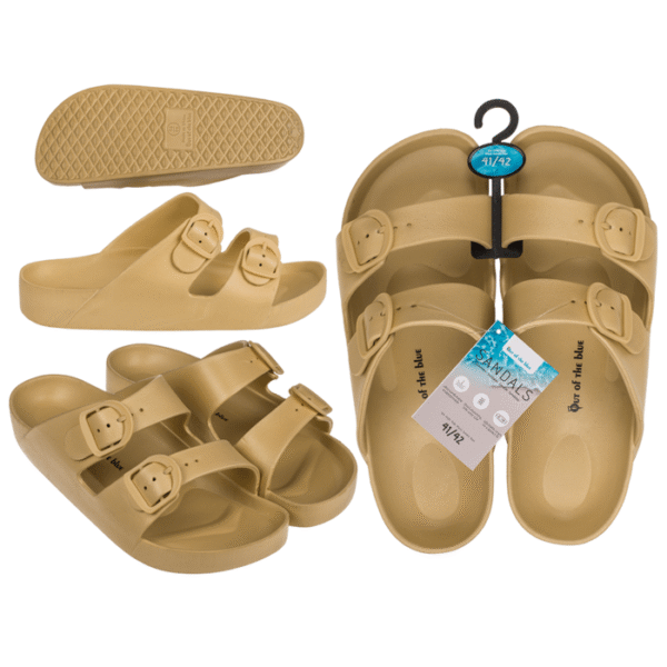 Men sandals, tan, size 4142, Men’s footwear Tan sandals Size 4142 Plastic material Summer style Hanger card Beachwear Casual shoes Outdoor comfort Vacation essential
