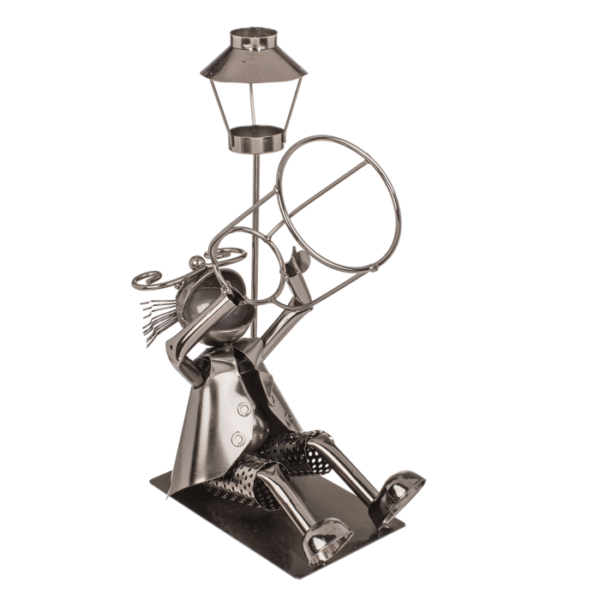 Metal bottle holder, Drinker, ca. 23 x 28 cm – Giving wine bottles in typical bottle gift bags is not only boring, but also not as impressive as a more unusual way of gifting a bottle. You can gift a wine bottle in a metal bottle holder that has been made with loving details and is sure to appeal to the recipient’s taste! The bottle holder designed as a drinker with lantern will be an eye-catcher in vetrines and commodes! Bottle holder