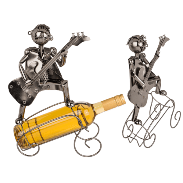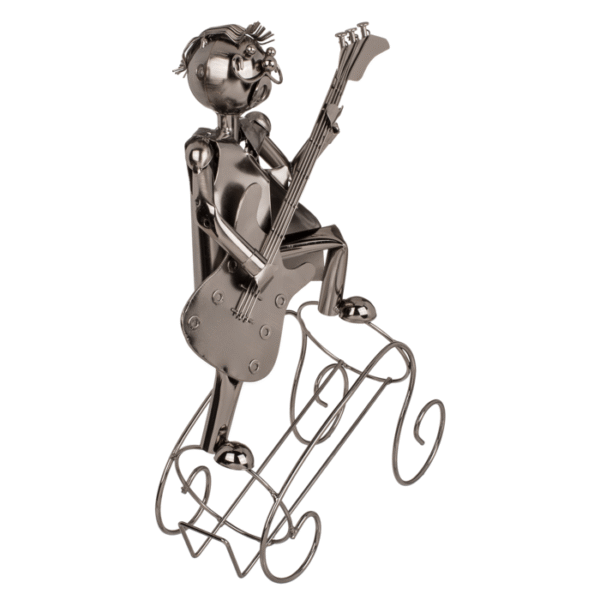 Metal bottle holder, Musician, ca. 25 x 36 cm – Giving wine bottles in typical bottle gift bags is not only boring, but also not as impressive as a more unusual way of gifting a bottle. You can gift a wine bottle in a metal bottle holder that has been made with loving details and is sure to appeal to the recipient’s taste! The bottle holder designed as a rock musician will be an eye-catcher in vetrines and commodes! Bottle rack