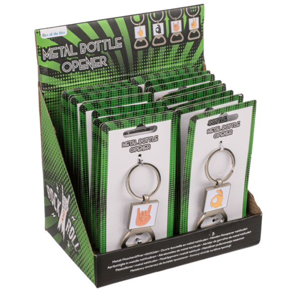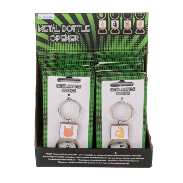 Metal bottle opener, Attitude, approx. 8,3 x 3,2 cm, 4 ass. & 3 colours ass., 24 pcs. per display Bottle opener