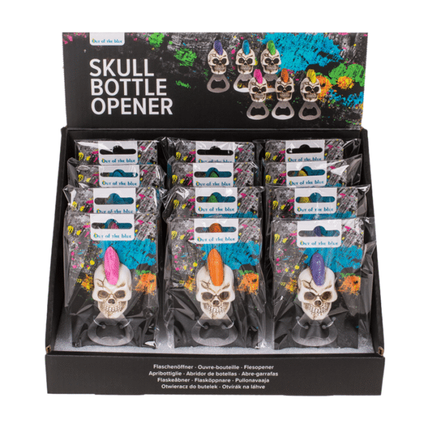 Metal bottle opener, Skull, approx.13,4 x 7 cm, polyresin, 6 ass., 12 pcs. per display Skull opener