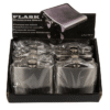 Metal flask for ca. 140 ml, ca. 10 x 9.5 cm, 8 pcs. per display – The metal flask for approx. 140 ml is a handy companion for parties, festivals and long hikes. The hip flask provides the necessary refreshment on hot days and warms the soul in bitter cold. The flask is made of robust and shiny metal. Metal flask