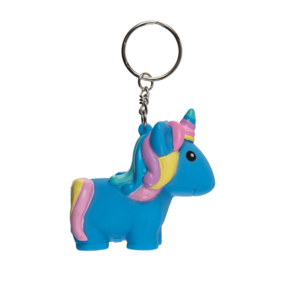 Metal key chain, Squeeze Unicorn I, Pop Fart, ca. 6 cm, 4 colours ass., 24 pcs. per display – The unicorn keyring is the perfect addition to a surprise bag on your birthday. The unicorn contains a fun and sticky surprise when the body of the figure is squeezed. A little slime fart comes out of the unicorn’s bottom, which goes back into the unicorn when the body is released. Unicorn keychain